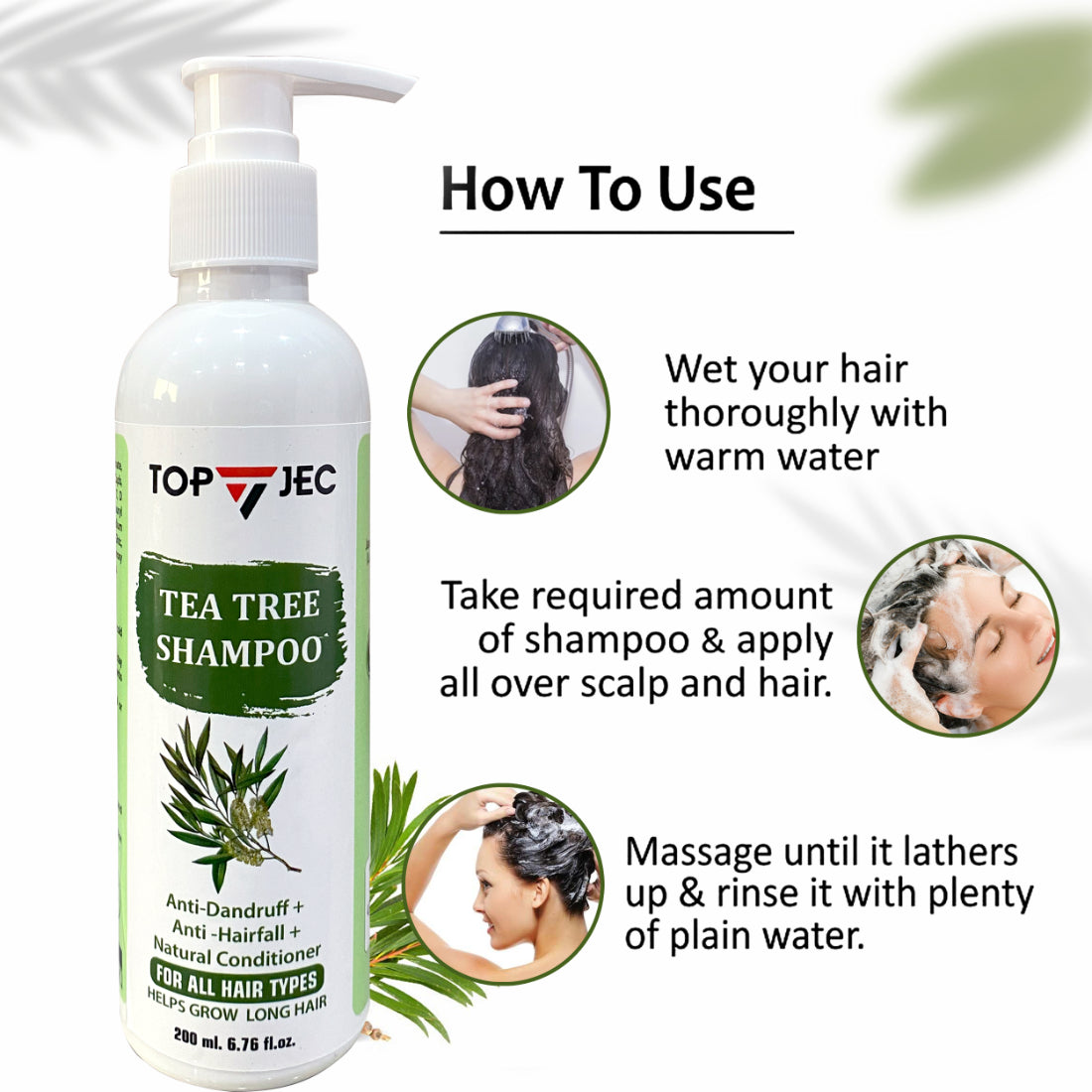 For best results, follow with TOPJEC® Tea Tree Conditioner or Hair Oil.